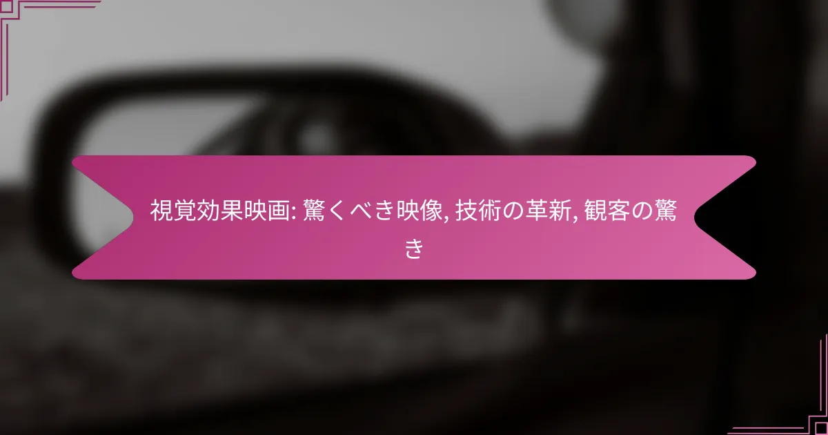 視覚効果映画は、観客に驚きや感動を与える重要な要素です。これらの映画は、リアルな映像や幻想的なシーンを通じて、視覚的な体験を強化し、物語に没入させます。