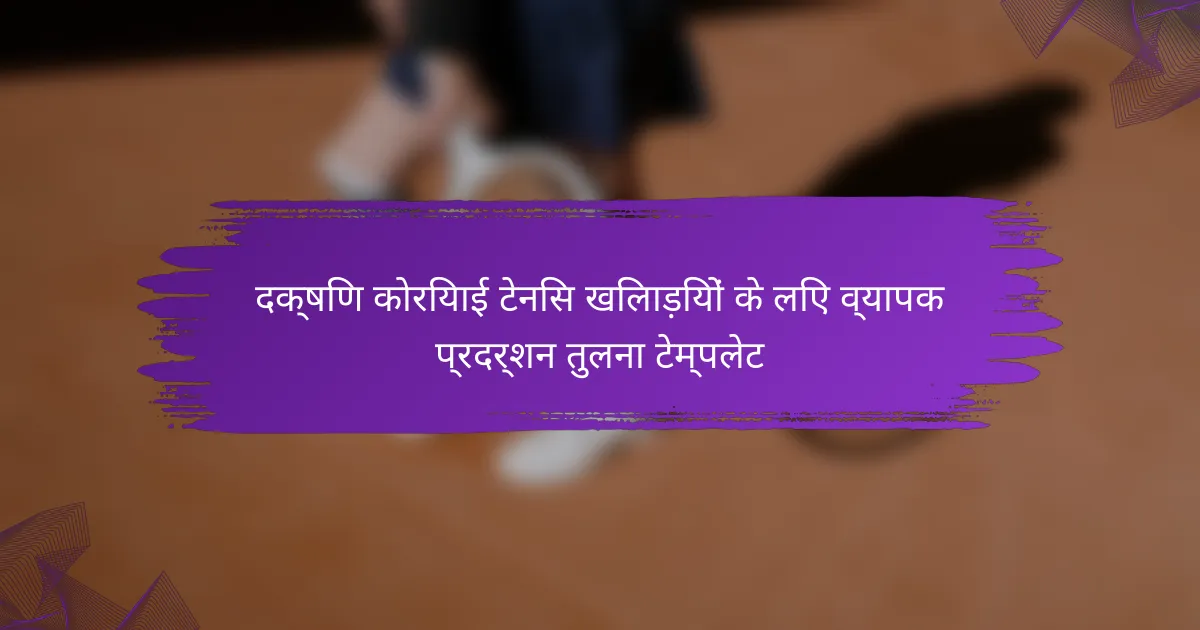 दक्षिण कोरियाई टेनिस खिलाड़ियों के लिए यह व्यापक प्रदर्शन तुलना टेम्पलेट महत्वपूर्ण मैट्रिक्स को उजागर करता है जैसे मैच जीतने का प्रतिशत, रैंकिंग अंक, और सेवा सांख्यिकी। जबकि दक्षिण कोरियाई खिलाड़ी अक्सर अपने अंतरराष्ट्रीय समकक्षों की तुलना में कम रैंक करते हैं, उनकी क्षमता उभरते प्रतिभा और वैश्विक टूर्नामेंटों में प्रतिस्पर्धात्मक प्रदर्शन के माध्यम से स्पष्ट है। इन प्रदर्शन संकेतकों को समझना उनके विकास और खेल में प्रतिस्पर्धात्मकता का आकलन करने के लिए आवश्यक है।