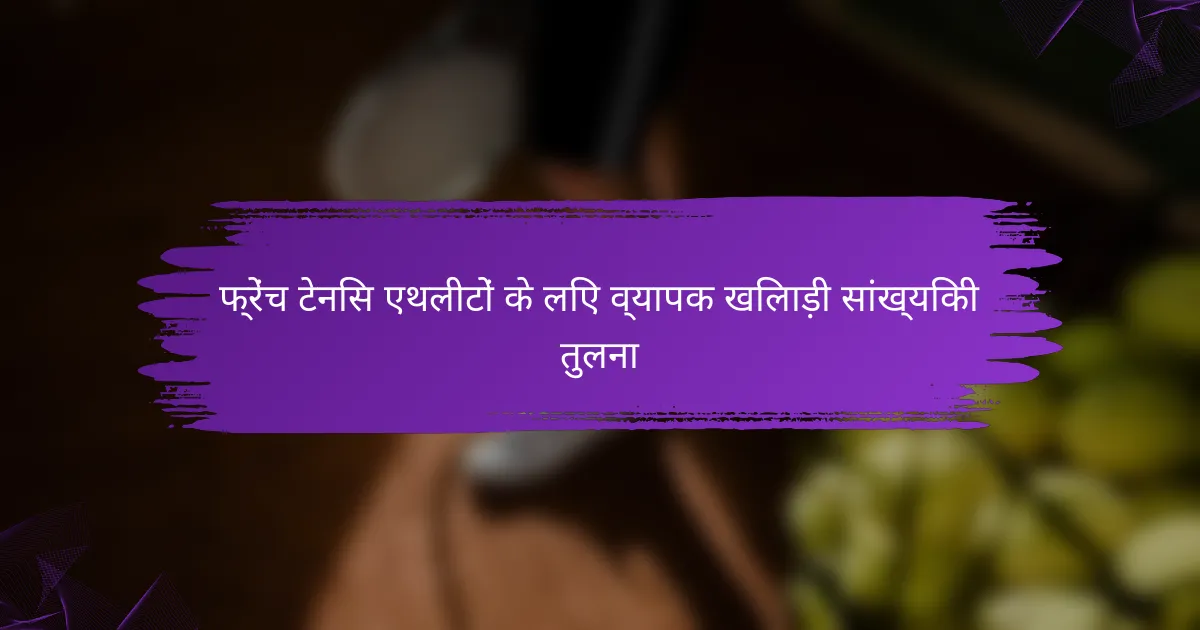 फ्रांसीसी टेनिस खिलाड़ी प्रदर्शन मेट्रिक्स की एक विविध श्रृंखला प्रदर्शित करते हैं जो विभिन्न प्रतियोगिताओं में उनकी ताकत और कमजोरियों को उजागर करते हैं। प्रमुख मेट्रिक्स जैसे जीत प्रतिशत, मैच अवधि, और ब्रेक पॉइंट्स को परिवर्तित करना उनके प्रतिस्पर्धात्मक बढ़त और सुधार के क्षेत्रों के बारे में अंतर्दृष्टि प्रदान करते हैं।