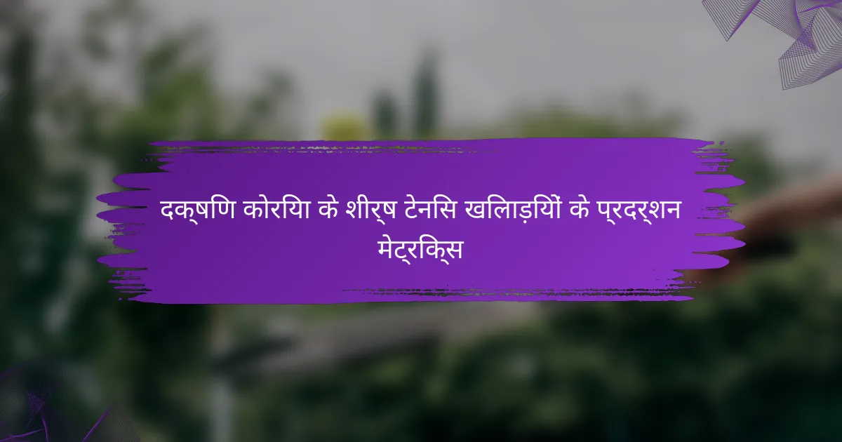 शीर्ष दक्षिण कोरियाई टेनिस खिलाड़ियों के लिए प्रमुख प्रदर्शन मेट्रिक्स क्या हैं?